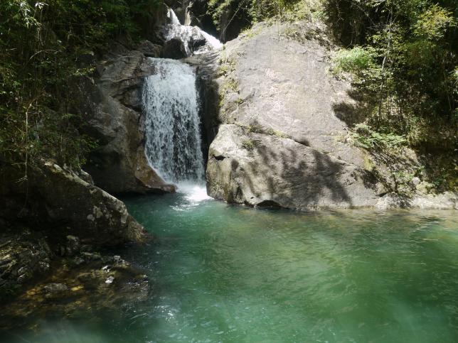 古龙峡,隐逸于粤北茫茫群山之中。在高差数百米的万丈寨群峰的夹峙下,两岸河谷幽深,泉瀑飞泻,崖树斜逸,异草遍被。景物特色可用“奇,隐,俏,巧,幽,旷,惊,险,全,古”十个字来概括。