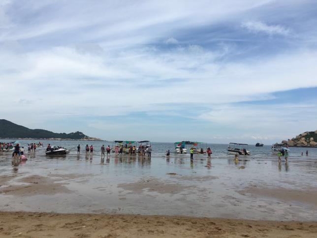 坐落在闽、粤、台三省交界海面的南澳岛,被誉为“海上绿洲”。南澳岛的青澳湾是沙质细软的缓坡海滩,海水清澈,据说南澳海岛的海水是广东最靓最清澈的。海水盐度适中,是天然优良海滨浴场。吹吹海风,来个海水浴,无限惬意。
