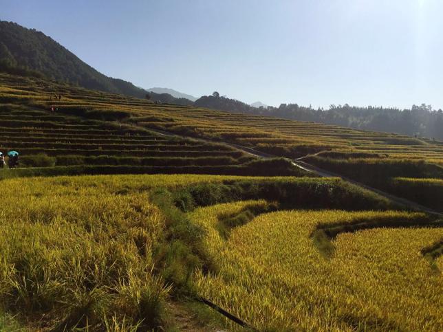 欧家梯田沿山层叠,四季景色各异,春天争光片片,夏天和苗叠翠,秋天稻浪涌金,有游客感叹:赏梯田何须到龙胜,连山的梯田美在不言中!