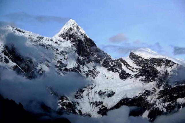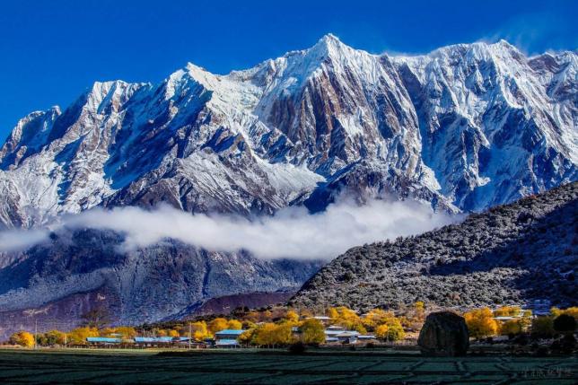 南迦巴瓦峰位于林芝地区,是全球海拔排名第15的高峰。这里山顶冰川高耸、形状俏丽,山间常有云雾缭绕,而山下则是植被茂密的西藏江南,景色优美。《中国国家地理》选美中国评选中,南迦巴瓦被评为“中国最美雪山”。