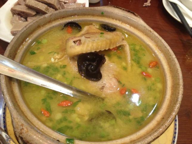 客家菜强调“原汁原味,可口可心”,雁南飞的“茶田乡下蒸鸡汤”、“客家咸菜全猪煲汤”、“山水酿豆腐”都让人回味无穷。膳食讲究养生保健的效用也是客家菜的特点,雁南飞结合茶田特色创造出了全新的“宫廷极品”系列——茶情碧绿鲍片、茶情浓鸡汁炖官燕、茶情夏威夷木瓜炖翅、茶情佛跳墙等茶田特色菜式,让饮食文化与养生之道完美结合。