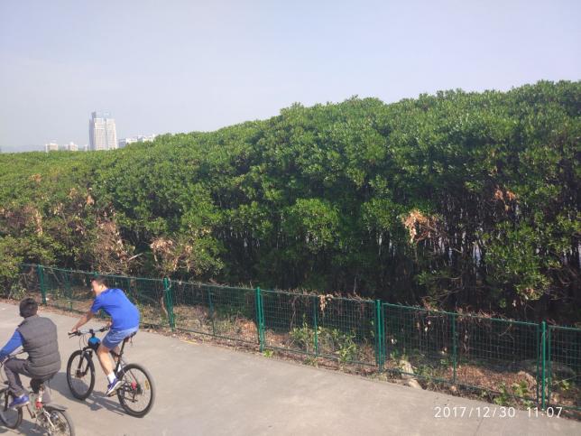 以红树科植物为主组成的海洋木本植物群落,因树干呈淡红色而得名。地势平坦、开阔,有沼泽、浅水和林木等多种自然景观是它令人喜爱的原因。落霞,千鸟齐飞、静水共长天一色的自然美景是它最深的特征。