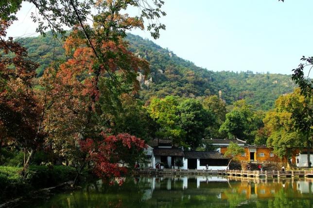 乾隆下江南四游天平山而演绎出了深秋赏枫的人文习俗,古枫吐艳与江南园林融为一体,别致盎然。这里的枫叶入秋经低温霜打后,叶色逐渐由青变黄、转橙、呈红、泛紫,往往一棵树上就五色并存,是名副其实的“五彩枫”。半山腰的望枫台是最佳赏枫点。