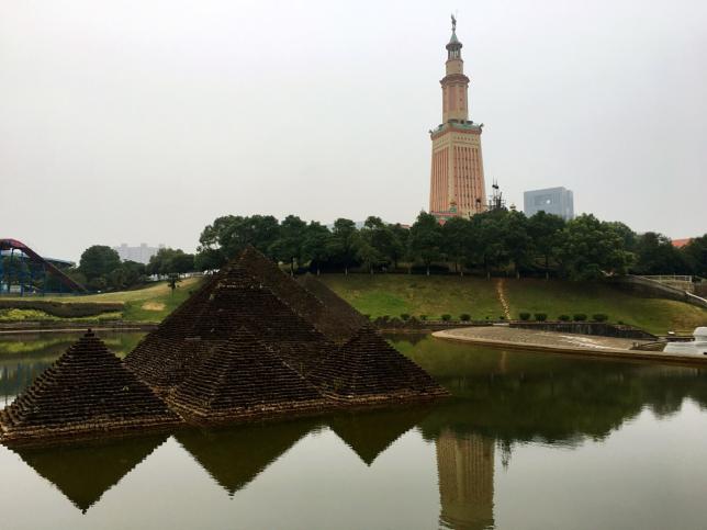 在仿造的世界建筑奇观中,德国新天鹅城堡、埃及亚历山大灯塔、意大利圣三山教堂等建筑是园中最为醒目的“奇观”。园中还有展示悠久的湖湘文化的“湘江谷”,谷内建有仿制的吊脚楼、岳麓书院、凤凰古城门等湖南本省的著名景点和名胜建筑。