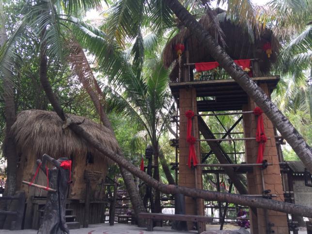 椰田古寨是一个黎族和苗族混合居住的寨子,也是感受黎苗族传统文化的好地方。景区内的建筑既有黎族的金字屋、船形屋和寮房,又有苗族的吊脚楼。而这里的居民更是身体力行地展现着黎苗族的文化习俗。凉棚内有阿婆在织黎锦、粮仓边有阿公在编竹篓。在这里也可以近距离地感受苗蛊化,尝一尝风味独特的黎苗族美食。这里也有不少展示着手工银饰的阿婆阿妹,银器大多精美,价格则略为昂贵,购买时还需理智选择。黎苗族人能歌善舞,若是三月三来到椰田古寨,这里更会多添一份歌舞洋溢的热情。