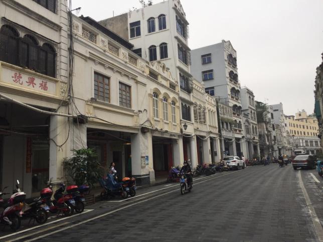 海口骑楼主要分布于海口市得胜沙路、中山路、博爱路、新华路、解放路、长堤路等老街区。骑楼老街覆盖面积约二平方公里,总长四点四公里,共有大大小小的三、四层高的骑楼建筑近六百栋。骑楼大多是上世纪初一批批从南洋回来的华侨借鉴当时的南洋建筑风格所建。骑楼大多布满优雅细致的雕塑和洋派的装饰,很有些巴洛克的味道。骑楼楼层都不太高,两三层的居多,有些还保留着早前的商号,和凭栏、门窗等处的精美雕花。