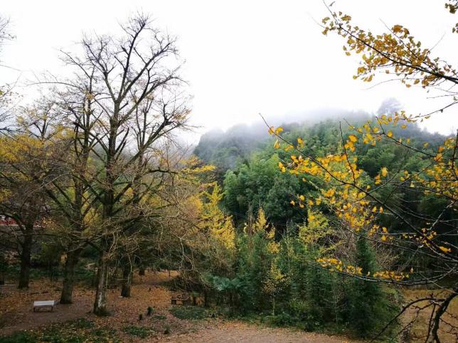 桐子坳,美在银杏林。深秋时,银杏俱黄,一棵棵高大的银杏树伸展着金黄的枝叶,像伞盖一样呵护着这片宁静而破旧的村庄,远处看一片黄灿灿,明亮惹人,从眼睛到心灵,醉的赏心悦目。而杏树每年最美的时光实际很短暂,它的黄金时代大约在十一月中旬后半个月左右。早去了,只能见到它青涩的样子,晚去了,只能见到满地的落叶。能否欣赏如此秋景,也许就看你与桐子坳的缘分了。