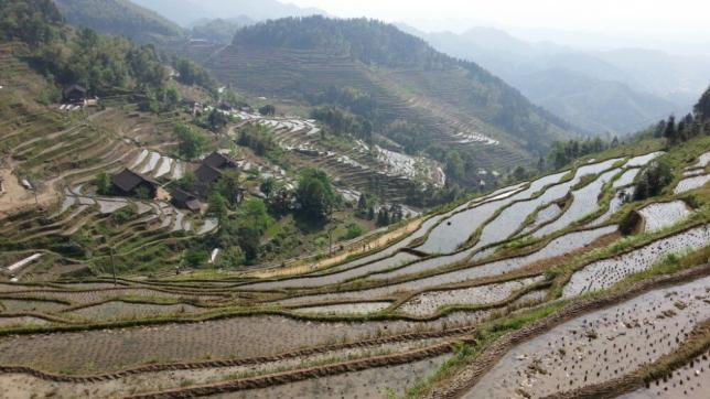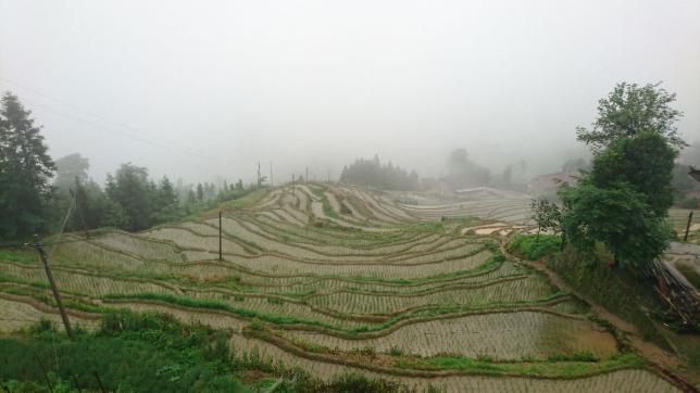 正龙,古称大湾里,坐落在奉家山系两个山头围成的山坳,清一色的“干栏式”板屋。“正龙梯田”,正是属于紫鹊界梯田的核心景区之一。想象着,夕阳西下,你沿着田埂小径朝梯田下的村子走去。在一处山坳里,无意间,瞥见一座板屋,那时你看到的是风景,而你也是风景中的一处。
