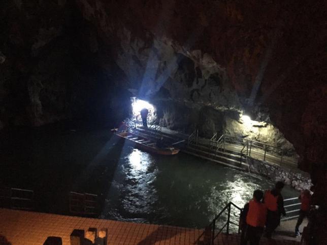 冠岩景区是桂林市新开辟的游览区。位于桂林市南29公里处,漓江东岸的草坪乡,因山形如帝王的紫金冠而得名,冠岩是一个巨型地下河溶洞,全长12公里,发源于桂林东面的海洋山。目前以开发靠近漓江的一段,有地下旱河和旱洞两部分,长约3公里。从桂林乘车经大圩古镇,可直达冠岩景区。也可乘船在游览漓江中途停靠冠岩码头,游览冠岩景区。冠岩,在草坪下游半公里,其外貌像古时的紫金冠,故名冠岩。岩内常年流出甘洌清泉,故又叫甘岩。还因在漆黑洞里,顶上透出微光,所以又叫光岩,民国二十六年李宗仁曾题“光岩”二字刻于洞口。