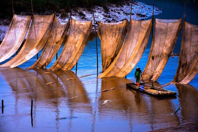 夏秋十分的海边,空气湿度适宜,更容易拍出精彩的照片。清晨六点左右,一轮火球从海面上喷薄而出,瞬间,大海像镀上了一层金色霞衣。