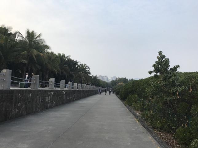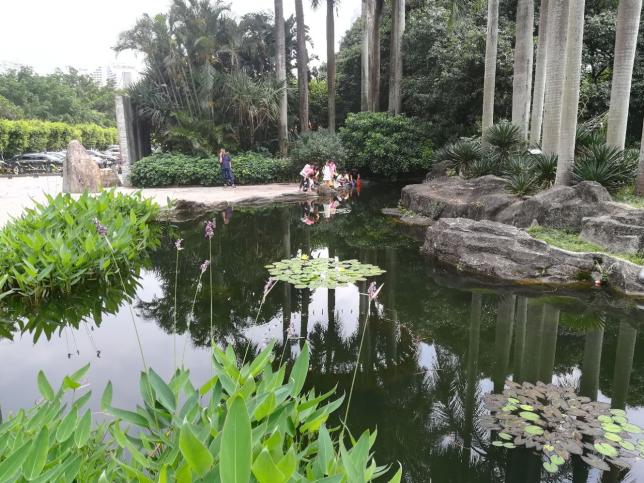 公园南区建有以棕榈科植为主的、具有热带、亚热带风光的8万平方米的椰风林大草地,为游人提供了环境优美的活动空间可3万平方米的人工湖水质清澈 、环境优美,给公园增添了灵气,使游人享受划船和垂钓的乐趣。