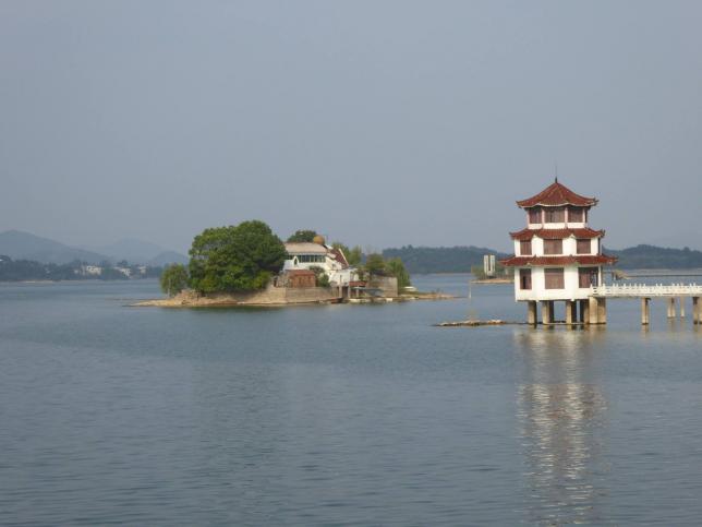 万佛湖、龙河口水库纪念馆、龙河塔、世界第一人工土坝、量水堰