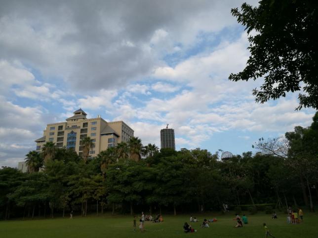 公园南区建有以棕榈科植为主的、具有热带、亚热带风光的8万平方米的椰风林大草地,为游人提供了环境优美的活动空间可3万平方米的人工湖水质清澈 、环境优美,给公园增添了灵气,使游人享受划船和垂钓的乐趣。