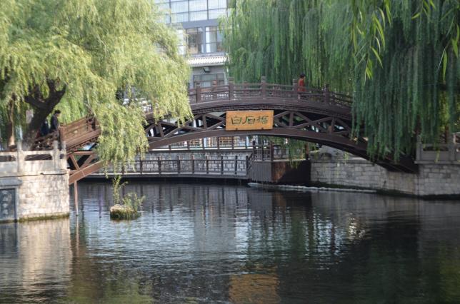 曲水亭街很有老济南特色,半个街道被小河占着,街随水走,水伴街行。中间是一行垂柳,随风摇曳的万千绿丝像挂在空中的五线谱,轻奏着动听的音符。