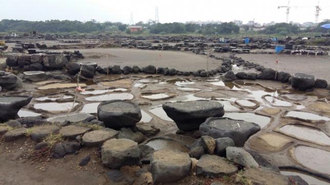 1000多个形态各异的砚式石盐槽,错落有致地分布在一垄垄田周围,像一个个撒落的黑珍珠;弯弯曲曲的卵石道蜿蜒其间,像一条条项链。