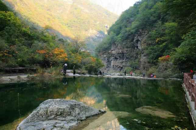 峡内有明代全真教石碑、白云洞、雪花泉、千年古柏,遍山红叶,村头有柳树、辘轳,潺潺流水;风光优于红叶谷。四季皆可出游,5--11月是最好季节,无饭店、无门票。