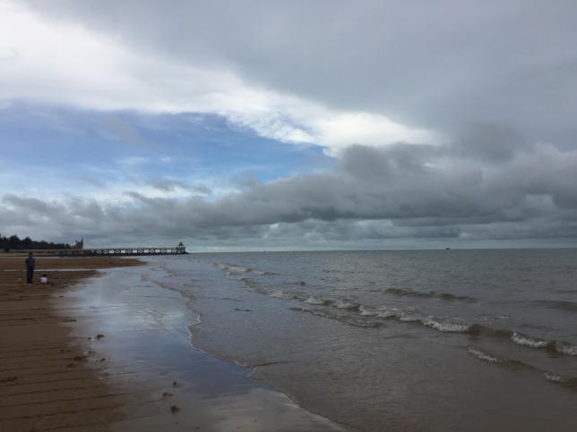 登临堤上,可观海上日出奇景。岸边一公里长的沙滩东西两侧是天然游泳场,一边风平浪静,海水清澈;一边波涛