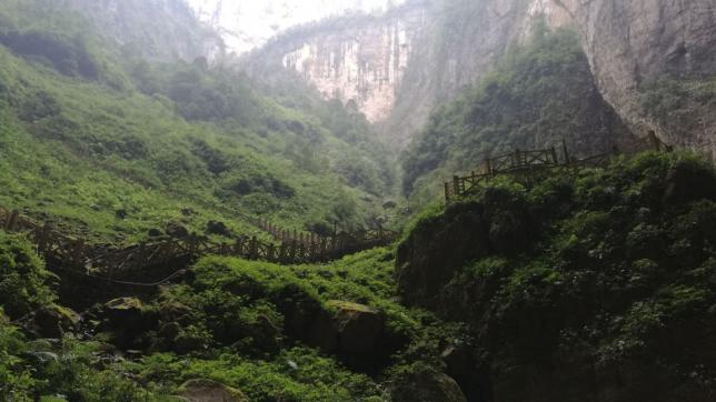 云阳龙缸,无愧为大自然鬼斧神工的造化。其中的龙缸天坑,深度达335米,居全国第三,世界第五;坑壁倾斜幅度近90度,山势险峻,灌木丛生,有着“天下第一缸”的美誉。