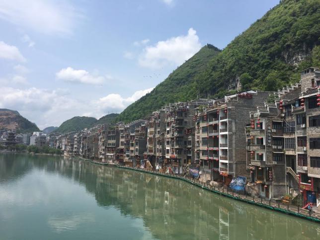 镇远古镇是贵州省黔东南苗族侗族自治州镇远县名镇,位于舞阳河畔,四周皆山。河水蜿蜒,以“S”形穿城而过,北岸为旧府城,南岸为旧卫城,远观颇似太极图。两城池皆为明代所建,现尚存部分城墙和城门。城内外古建筑、传统民居、历史码头数量颇多。