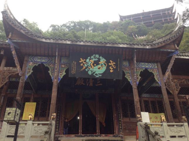 老君洞道观位于重庆市南岸黄桷桠附近的老君山上,是重庆的重要道观。依山造殿,凿壁成像,呈“玄”字形格局,顶上的八角亭,即为玄字上端的一点。道观占地300多亩,造像30余尊。迎山门为灵官殿,沿石级盘旋而上,绵延2公里,依次为:明代石刻殿、五路财神殿、西王母殿、真武殿、慈航殿、吕祖殿、七真殿、斗姆殿、五百灵官殿、玉皇殿等。
