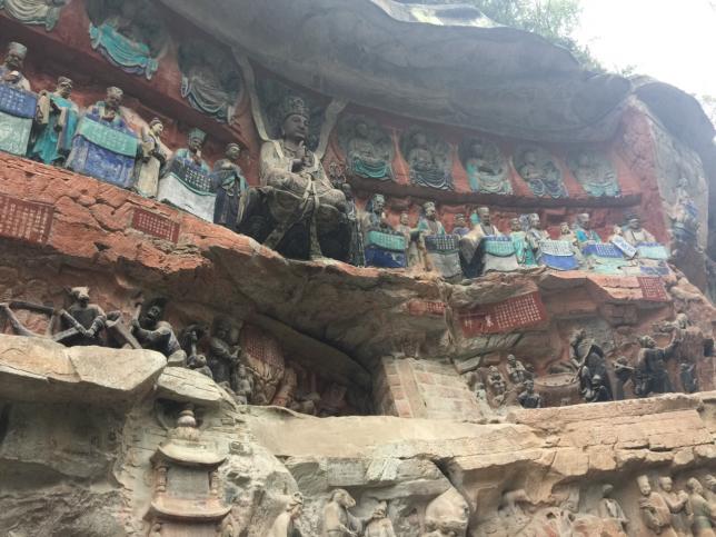 大足石刻位于重庆市大足区境内,是唐末、宋初时期宗教摩崖石刻,以佛教题材为主。