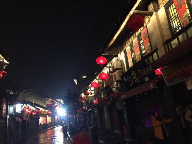 其古阁楼的样子,亮着五彩的灯光,甚是炫彩夺目。其中还有著名的特产一条街,其火锅底料可是闻名于世的。