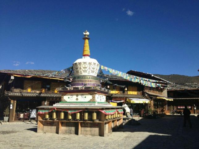 独克宗古城经过大火后已在原址上修复重建(非新建),穿过鳞次栉比的街道,月光广场是中外游人最大的聚集地,每日傍晚的广场舞非常具有民族特色,侧面的龟山公园内拥有吉尼斯记录世界最大转经筒,也是香格里拉的标志性建筑之一。