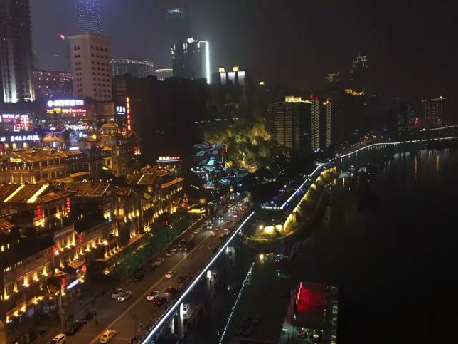 这里可以品重庆美食,观两江夜景,还可以看带有重庆特色的吊脚楼,而在这里可以置身其中感受一下独特的山城,在这里乘坐电梯可以感受到从十一楼出去和一楼出去都是大马路。