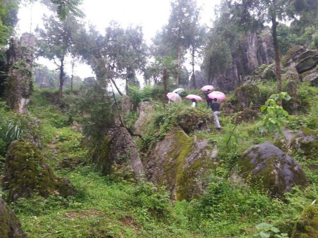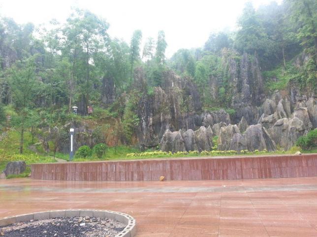 它包含了石芽发育从幼年到青年到老年的各种形态,巧中见奇、奇中见幽。春天,石林与树林、田野、村庄和谐相处,石中有林,林中有石、绿色掩映,竹影摇曳,花香鸟语,犬吠鸡鸣,辉映成趣。