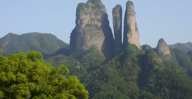 江郎山有三绝:“三爿石”、“一线天”、“郎峰天游”。三爿石是一处令人肃然起敬的天然纪念碑、一个壮观的标志性景观、一部丹霞地貌的杰作。一线天,亚峰和灵峰之间的深窄陡直峡谷,长高各约300m,两壁平行且笔直,如刀削斧劈,给人以无与伦比的雄伟气势,被专家勘定为“中国一线天之最”。郎峰天游,游客可沿着石壁的3500余级石阶,平均坡度达88度的郎峰拾级而上到达峰顶。矗立峰巅,凉风习习,俯瞰脚下,百里山川尽收眼底。