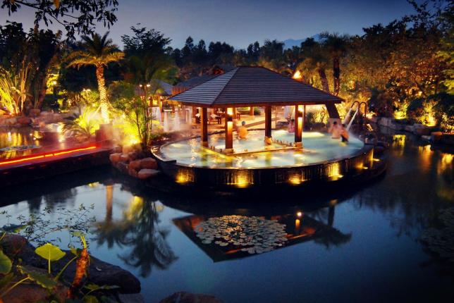 厦门日月谷温泉渡假村坐落于厦门天竺山麓,山峦环抱、景色绮丽,距厦门岛仅30分钟车程。度假村的整体风格呈现浓郁的东南亚热带风情,温泉资源得天独厚、自然环境优美、休闲设施完善,自成一片远离城市喧嚣的“世外桃源”。