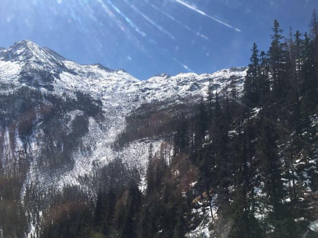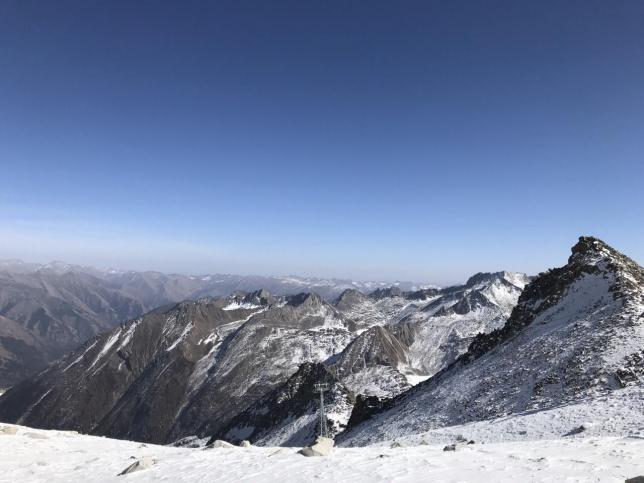 达古冰川山顶已经是凛冬,山脚下的秋色才刚开始向上蔓延。