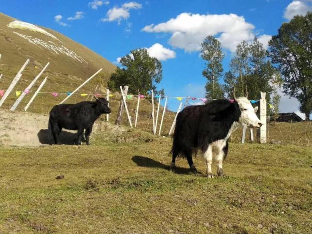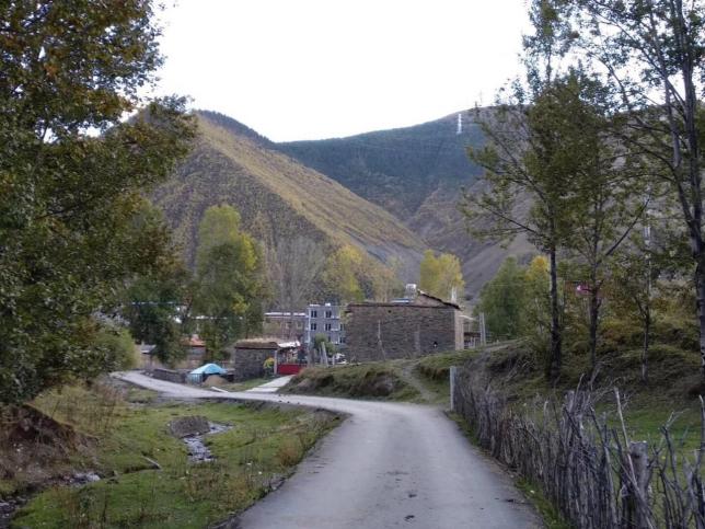 藏羌特色的村落房子、淳朴的村民、偶尔传来的牛羊叫声、远处的雪山,这些景象相互呼应,构成一幅绝美的秋景图。