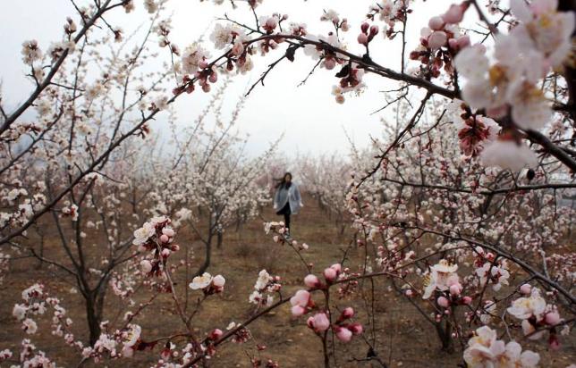 北京可观赏杏花的地方不少,但真正成气候的不多。在延庆县香营乡的新庄堡村,春意渐浓,不久之后,20万亩杏花就会开遍山野。可谓漫山缀红,花香徐徐。但是延庆县平均海拔500米,天气变化比城区晚半个月左右,因此到了4月中旬之后,本是早春盛放的杏花才刚刚在这里迎来它的盛花期。另外,杏花刚开时为粉红色,之后慢慢变为白色,所以想彻底观赏这两种状态的杏花之美,最好多来两次。