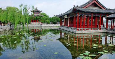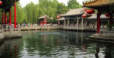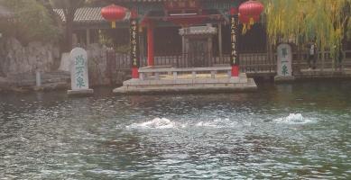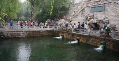趵突泉居济南七十二名泉之首,被誉为“天下第一泉”,也是最早见于古代文献的济南名泉。趵突泉是泉城济南的象征与标志,与千佛山、大明湖并称为济南三大名胜。趵突泉位于济南市中心,南靠千佛山,东临泉城广场,北望大明湖,是以泉为主的特色园林。泉水四季恒温,严冬,水面上水气袅袅,像一层薄薄的烟雾;一边是泉池幽深,波光粼粼;一边是楼阁彩绘,雕梁画栋,构成了一幅奇妙的人间奇景,当地人称之为“云蒸雾润”。历代文人墨客诸如曾巩、苏轼、张养浩、王守仁、蒲松龄等都曾在趵突泉留下美文以志之。趵突泉水清澈透明,味道甘美,是十分理想的饮用水。泉池中放养金鱼,大者长逾三尺。泉东侧隔来鹤桥有望鹤亭茶社,专为游人提供用趵突泉水沏的香茶。