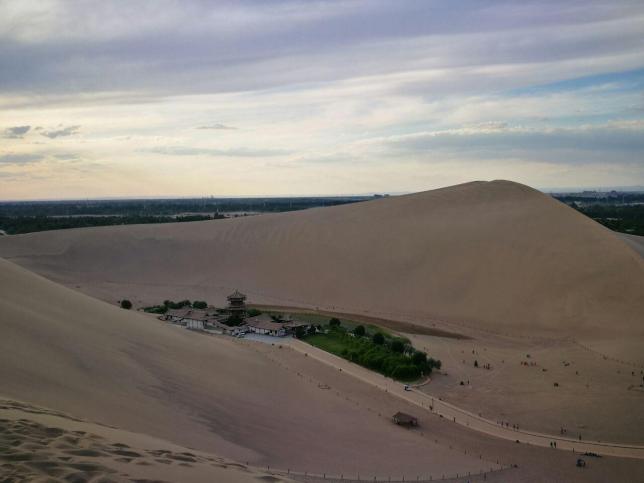 敦煌月牙泉,古称沙井,俗名药泉,自汉朝起即为“敦煌八景”之一,得名“月泉晓澈”。月牙泉南北长近100米,东西宽约25米,泉水东深西浅,最深处约5米,弯曲如新月,因而得名,有“沙漠第一泉”之称。