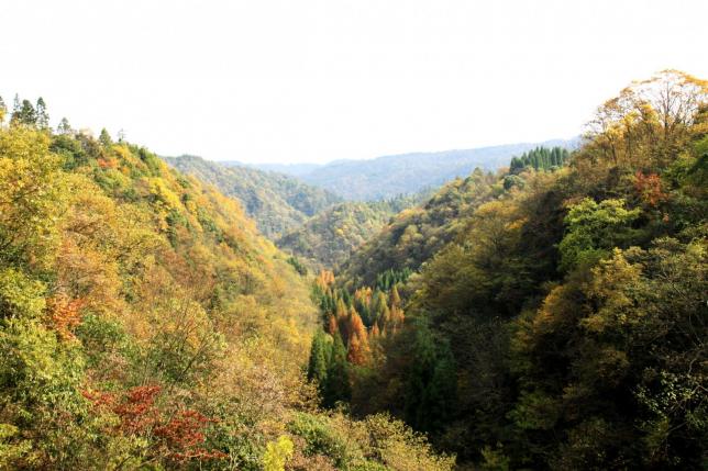 每到秋天,大巴山腹地的城口便会成为大自然界的调色板。彩叶是秋天送给城口的诗,层林尽染彷如童话世界。和漫山红叶、遍野黄叶不同,层林尽染的大巴山犹如“打翻了的调色板”。绿,是四季常青的松柏;红黄,是挺拔的枫树和板栗树;紫,是林下的灌木。站在山顶,放眼望去,是山水画的五彩斑斓,低头一观,是印象画的落叶彩毯。耳边,溪流流水潺潺。人行其中如同闯进秋天的童话。