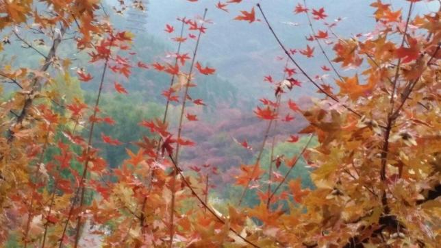金佛山的秋叶,西、北坡,乃至山顶各具特色。山顶:金佛山最高峰“风吹岭”的秋色,大气磅礴,五颜六色点缀在千山万岭,但色多而不艳,其秋色多数是在云雾中度过。