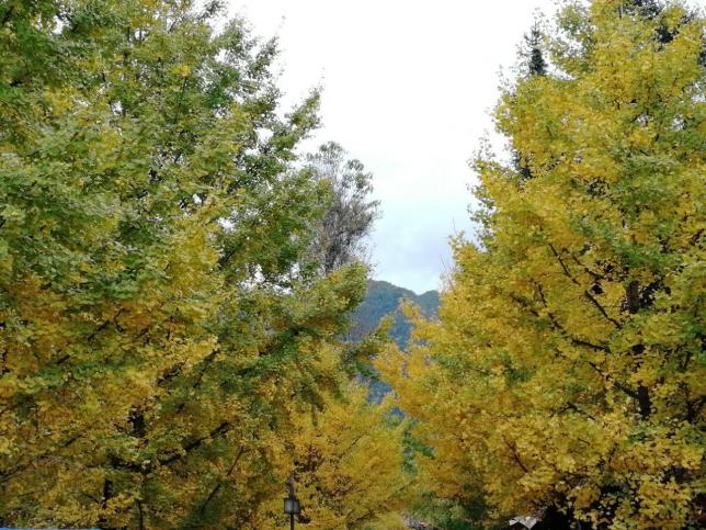 当你徐行走入银杏村,将会呼吸到浓浓秋天的气味,金黄的叶子落在石墙上、屋瓦间、大街上、田埂间、院落里,仿佛梦幻般的童话天下。