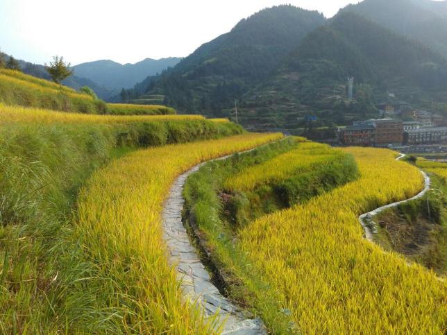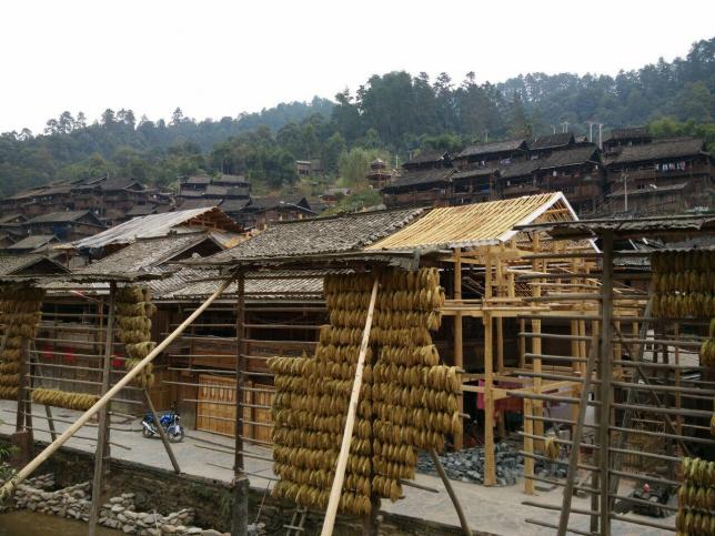 错落有致的晒秋美景,这是一个百年来人口几乎零增长,家家户户一儿一女的传奇寨子。但每年秋天,这里最吸引人的不是传奇,而是禾晾——房前屋后的禾晾架上晾晒着香禾糯,一排一排,放眼望去,一片金灿灿。