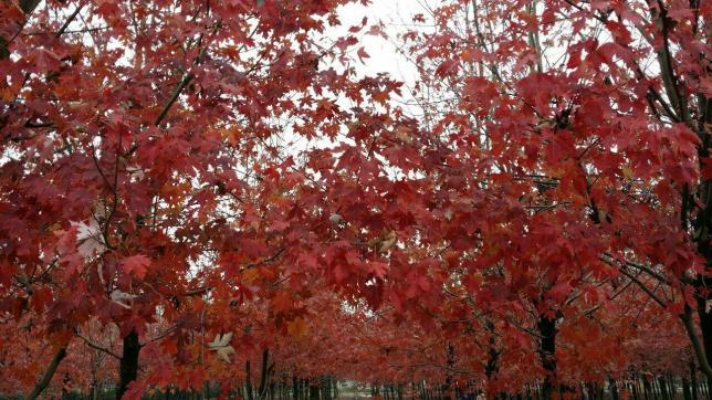 香火岩中有一大片红枫林,一到秋天,枫叶已被“染”成红色,十分耀眼。等到深秋,飘落下来的一片片枫叶铺满了公路,简直是说不尽的美。红峰林中,除了枫树,也还有其他的树种。走到高处远望,山间或橙黄或火红的秋叶,在微凉的风中尽情摇曳。