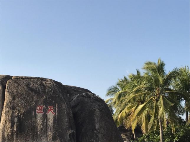 景区海湾沙滩上大小百块石耸立,“天涯石”、“海角石”、“日月石”和“南天一柱”突兀其间,沙滩上大小百块磊石耸立,上有众多石刻。