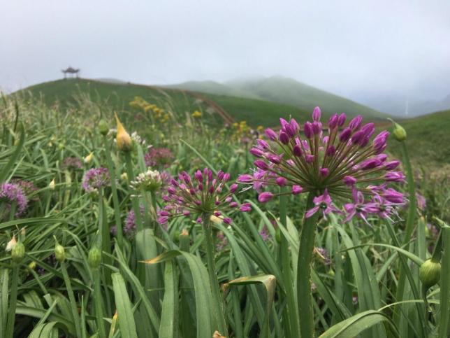 这里集中生长着中国面积最大的野生韭菜花。由于韭菜坪山间常年云雾缭绕,这片浩瀚的野生韭菜花也被称为“云上花海”。登上韭菜坪峰顶,漫山遍野的紫色球状韭菜花,点缀在万亩绿色草叶之间,灿烂、辽远,让人心旷神怡。这里更是超适合创作小众摄影地:白日里,蓝天白云,紫色花海;星空下,露营观星,摄影创作。