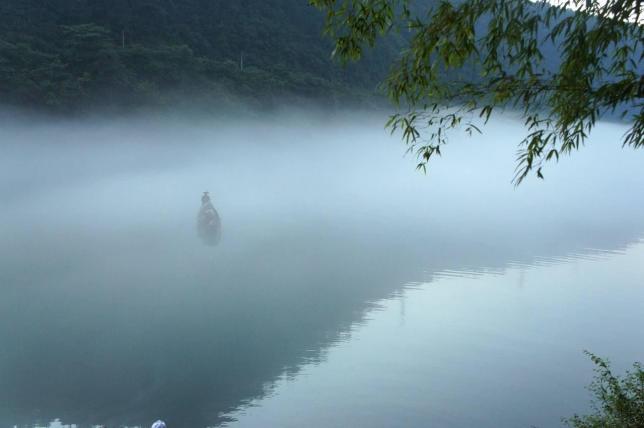 每年的5月—10月间,江面常常雾弥漫,在峡谷中袅袅升腾,倘若一条玉带。蜿蜒的东江水面蒙上羞涩的白色面纱,如镜的江面修饰了青山倩影,香风送来一叶牧渔的扁舟,写意的山水画里传来一声声流动的小曲。江面上的薄雾,一会聚成一团浓密的白云,一会散开成簇簇飘渺的花朵,一会排成蜿蜒的玉带,一会像仙女散花般轻歌曼舞。