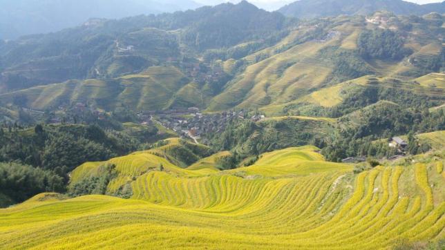 9月,错开国庆高峰期的拥堵,欣赏龙脊梯田金秋美景,漫山遍野,一派金黄,气势恢宏。梯田群里坐落着几个少数民族古寨,这里居住着壮、瑶两个民族,在寨子里住上一晚,早晨欣赏田间璀璨的日出。