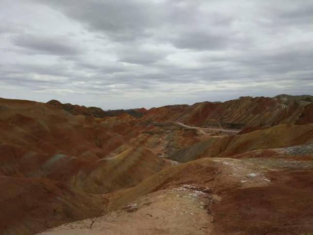 张掖的七彩丹霞就像上帝的颜料盘洒落在了这片山地丘陵上。