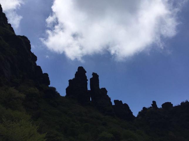 山,或雄奇险峻,或秀美多姿,那引人入胜的是新金顶,在海拔22 00余米的崇山峻岭上。突兀而起冒出一尊石柱,高约100米,如巨笋出土,似玉龙啸天,红云环绕,直指苍穹。