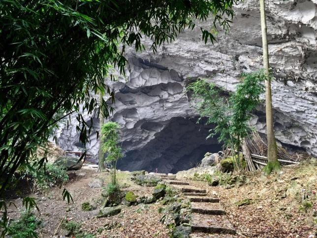 进洞路线:进洞的路途十分艰险遥远。从政府为这里居民修筑的公路尽头下车,还要步行一小时崎岖山路,途中翻越一座高山,再爬到对面的山腰上,才能到达此洞口。沿途悬崖峭壁乱石挡道,多处山路的宽度不足一米。