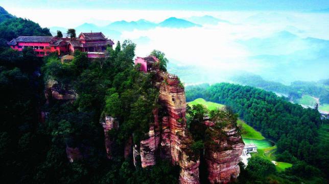 3、上到山顶一定要进净音寺,寺内有一平台,三面绝壁,地势险峻,为极目远眺的绝佳之处,亦是鸡公嘴“非去不可” 的最大理由,不能错过。