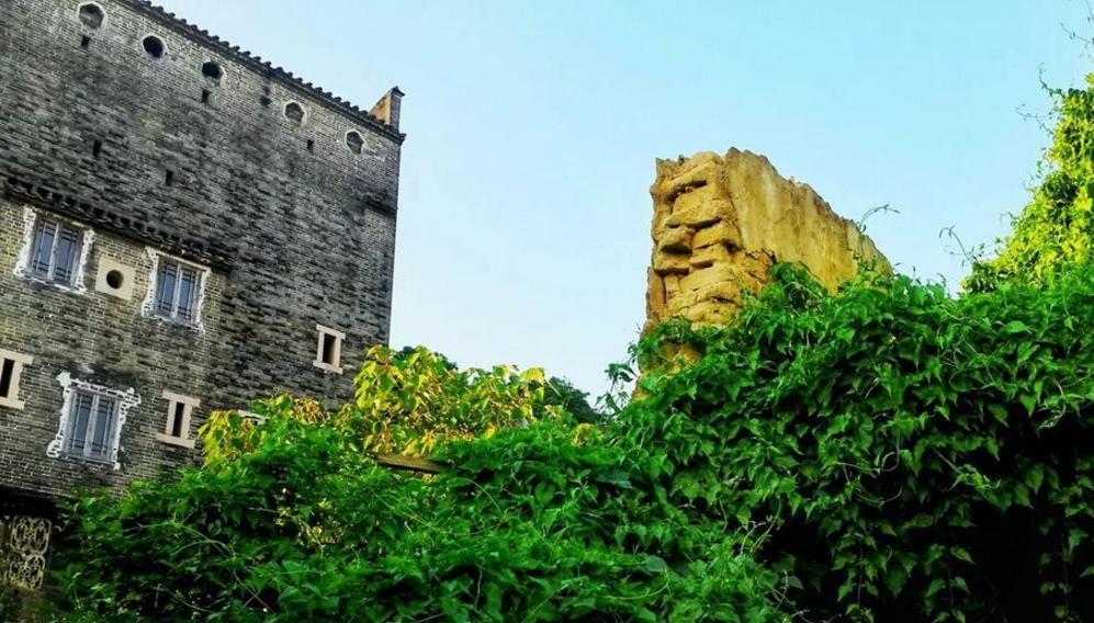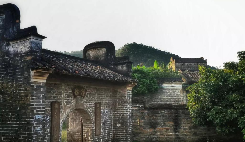 古祠、岭南民居、碉楼、水塘和草地,如同一幅水墨画,我在画中行。村内是清一色岭南民居,家家都是灰瓦、青砖、飞檐,建筑布局整齐,外形色调一致,嵌填在"棋盘式"方格网形成的整齐的宅基地中。